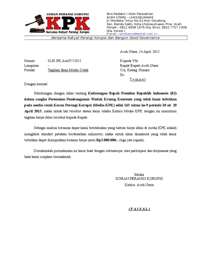 Surat tagihan pembayaran merupakan surat resmi yang dikirimkan pemilik usaha kepada pelanggan yang belum melakukan pembayaran, oleh karena itu wajib hukumnya menyertakan kop surat. Tujuan dari pengiriman surat ini adalah untuk mendapatkan pembayaran atas jasa ataupun produk yang telah diberikan sebelumnya namun belum dibayarkan oleh pihak pelanggan. Kegiatan belajar mengajar tidak bisa kita pungkiri membutuhkan dana atau biaya yang harus di keluarkan oleh orang tua anak usia dini guna tercapainya kegiatan belajar mengajar yang baik mau tidak mau pihak pengeloa paud. Suatu ketika eksporter akan mengirim barang tetapi importer belum melakukan pembayaran. Dalam kesepakatan hutang piutang, tentu ada batas waktu dimana peminjam harus mengembalikan hutang tersebut kepada pemberi pinjaman.